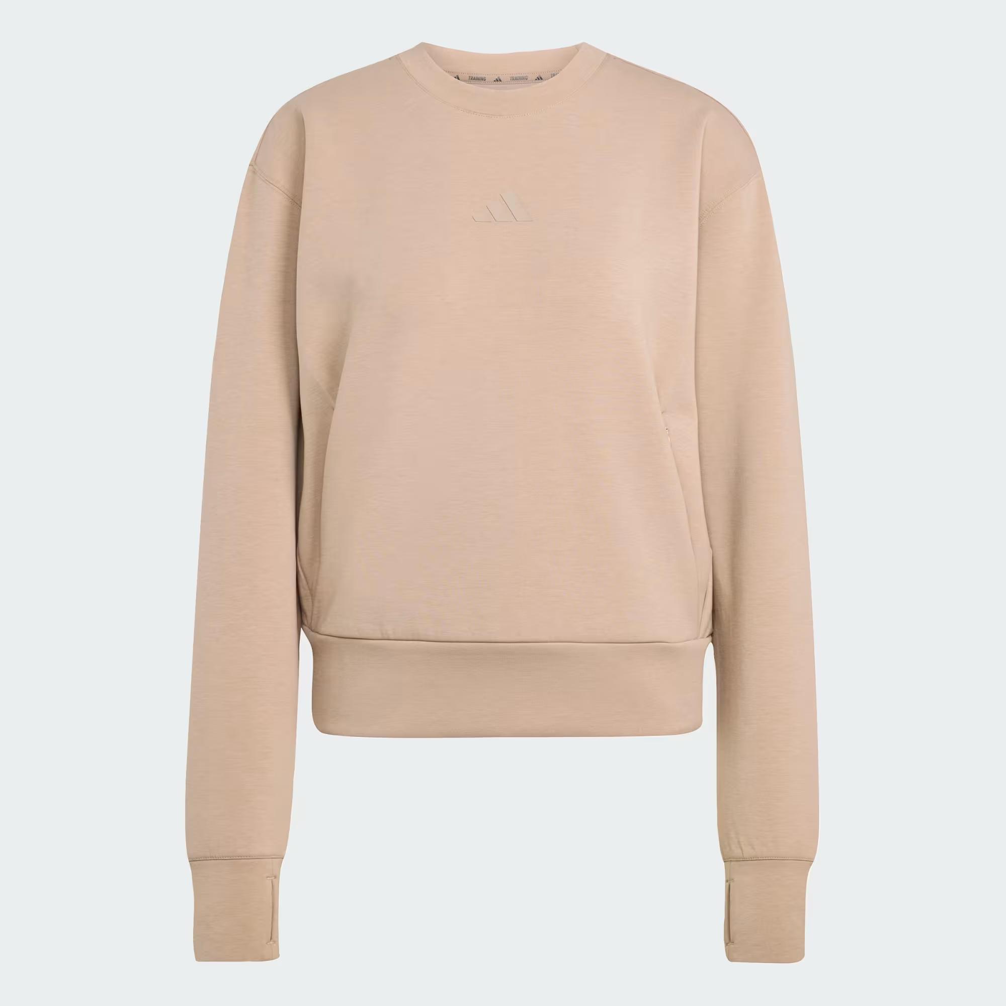 Bol kesim Ribana bisiklet yaka %73 polyester (geri dönüştürülmüş), %19 pamuk, %8 elastan CLIMACOOL Fermuarlı ön cepler Nemi uzaklaştıran teknoloji Baş parmak delikleri Başparmak delikleri Bantlı manşetler ve kenar