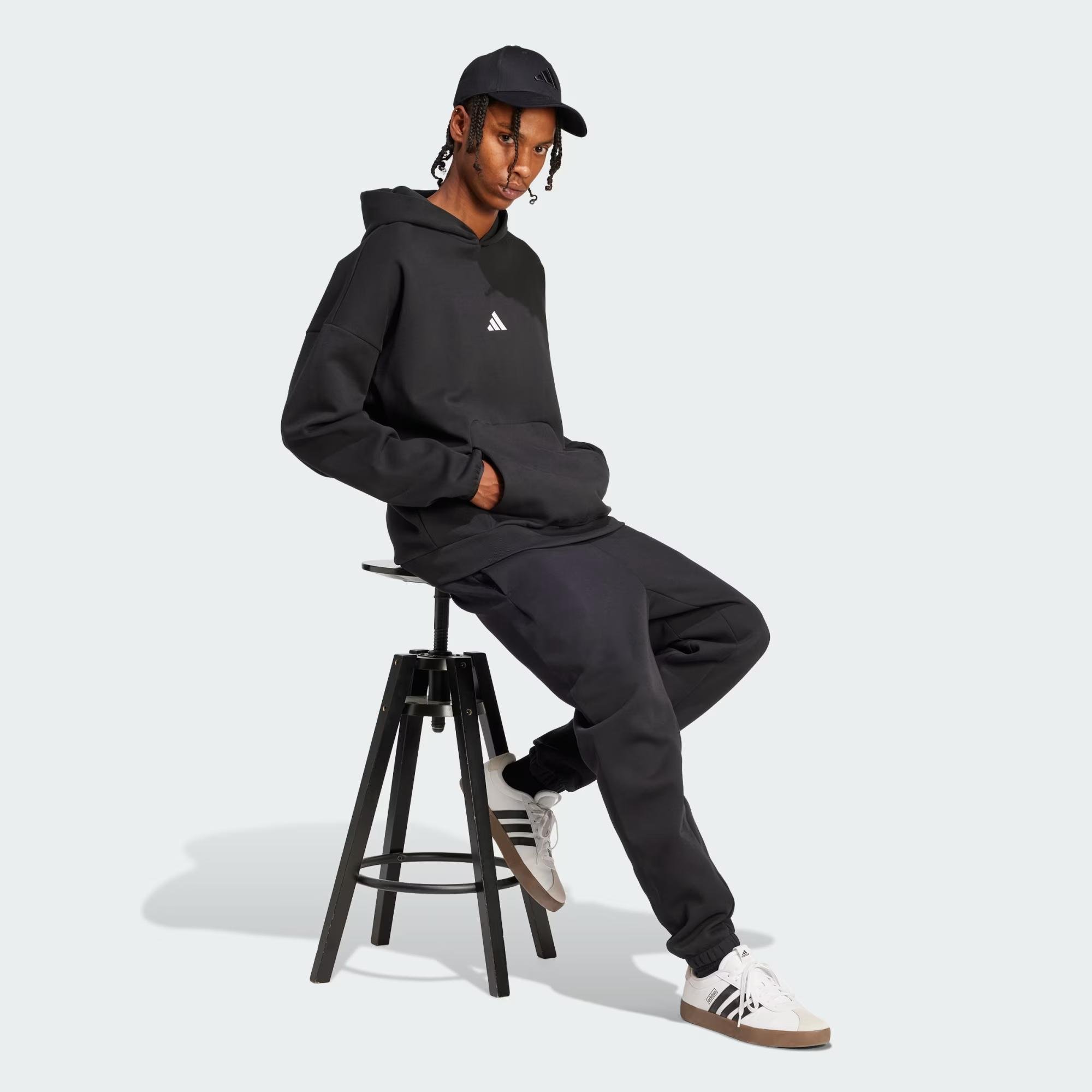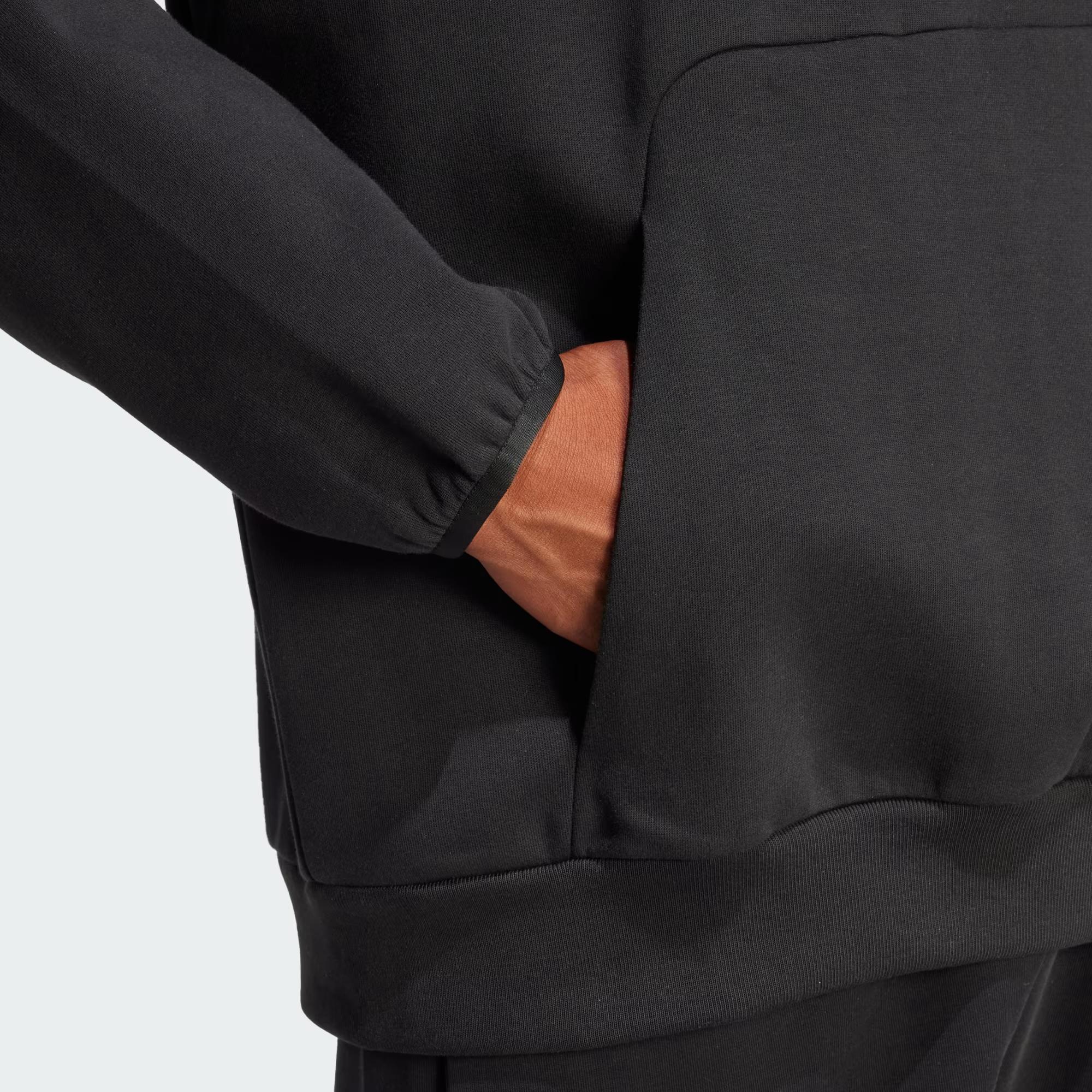 Bol kesim Kapüşonlu tasarım %68 pamuk, %32 polyester (geri dönüştürülmüş) Kanguru cep Ribana manşetler ve alt kısım
