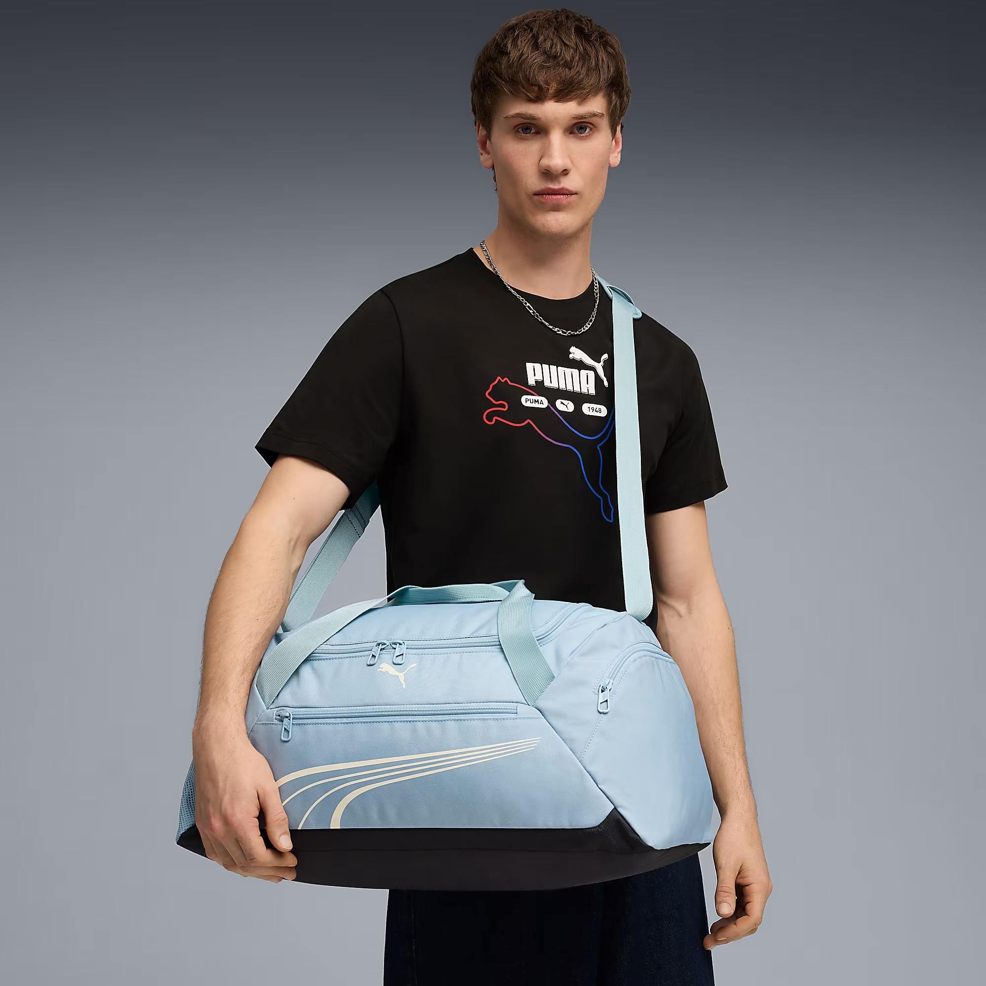 Ana bölmeye çift yönlü fermuarlı giriş Önde fermuarlı bölme Ayakkabılar için yan fermuarlı cep Bir yan file cep Boyutlar: 53 cm x 28 cm x 25 cm Hacim: 34 L PUMA marka detayları En az %50 oranında geri dönüştürülmüş malzemeler kullanılarak üretilmiştir